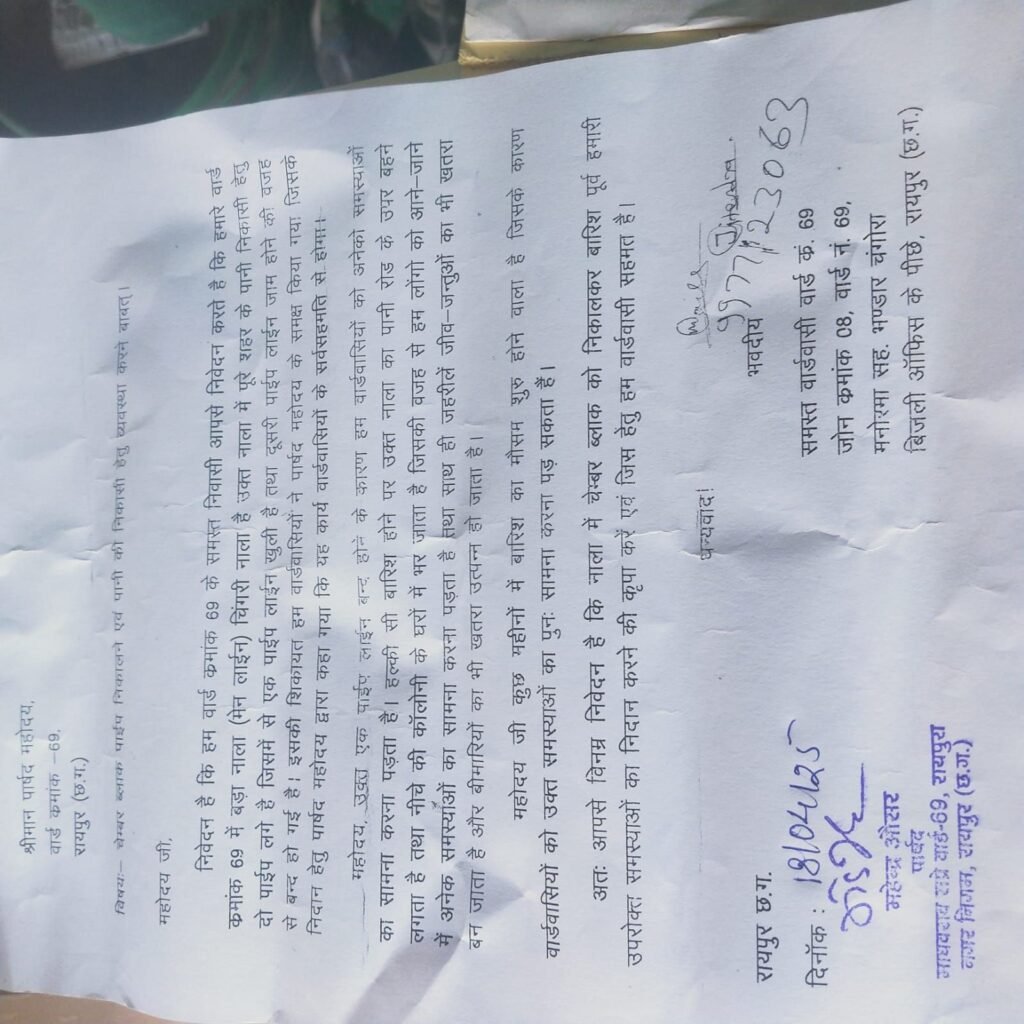 रायपुर। नगर निगम जोन क्रमांक 8, वार्ड क्रमांक 69 में लंबे समय से चली आ रही पाइपलाइन की समस्या आखिरकार सुलझ गई है। पानी की निकासी और ब्लॉक पाइप हटाने की मांग को लेकर वार्डवासियों ने सामूहिक रूप से ज्ञापन सौंपा था, जिसमें राष्ट्रीय मजदूर कांग्रेस के राष्ट्रीय समन्वयक सूर्यप्रकाश उपाध्याय ने अहम भूमिका निभाई। वार्ड के निवासी लंबे समय से परेशान थे क्योंकि एक पाइपलाइन के बंद होने के कारण नाले का पानी सड़क पर बह रहा था, जिससे निचली कॉलोनियों में पानी भर जाता था और आने-जाने में मुश्किलों का सामना करना पड़ता था। वार्डवासियों की शिकायतों के बावजूद कई बार मामला लंबित रहा, लेकिन इस बार सूर्यप्रकाश उपाध्याय के नेतृत्व में वार्डवासियों ने संगठित होकर कई बार नगर निगम अधिकारियों सहित अन्य तक अपनी आवाज पहुँचाई। ज्ञापन सौंपने के लगातार प्रयास के बाद नगर निगम ने कार्यवाही करते हुए पाइपलाइन की सफाई और मरम्मत का काम शुरू कर दिया। वार्डवासियों ने राहत की सांस ली और इस सफल प्रयास के लिए सूर्यप्रकाश उपाध्याय और सभी जागरूक नागरिकों का आभार व्यक्त किया है। स्थानीय निवासियों का कहना है कि यदि इस प्रकार जनप्रतिनिधि और नागरिक मिलकर समस्याओं के समाधान में आगे आते रहें, तो भविष्य में वार्ड की समस्याओं का समाधान और भी तेजी से होगा।
