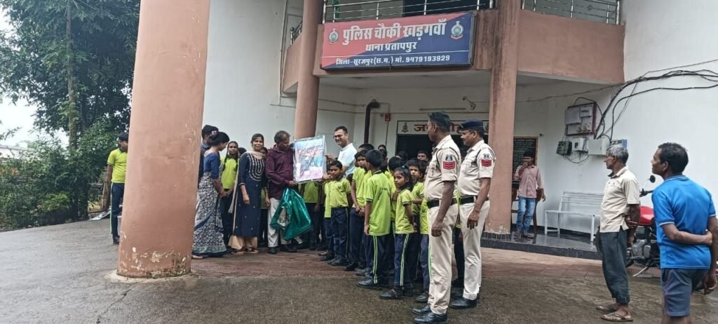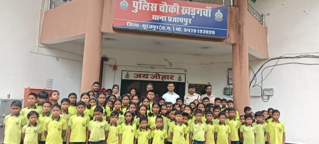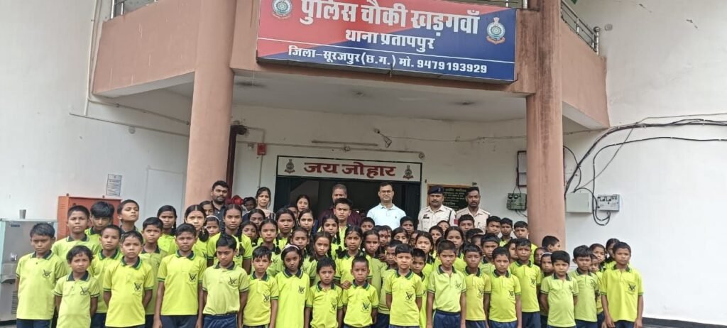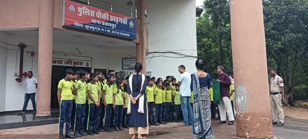 स्कूली बच्चों ने किया खड़गवां चौकी का भ्रमण,प्रभारी ने समझाया पुलिस के काम करने का तरीका