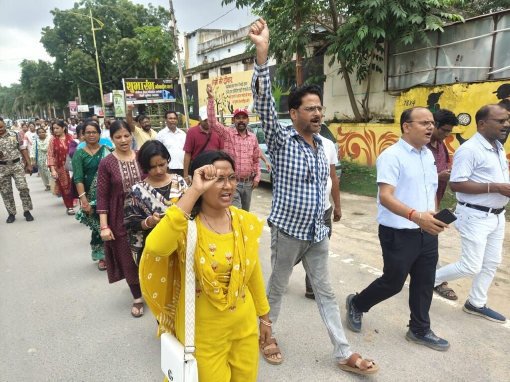सूरजपुर – शिक्षक साझा मंच ने सरकार के समक्ष अपनी चार प्रमुख मांगों को लेकर एक बार फिर आवाज बुलंद की है। नियम विरुद्ध युक्तियुक्तकरण को निरस्त करने,क्रमोन्नति का जनरल आर्डर, पूर्व सेवा का पेंशन में समावेश तथा बीएड की अनिवार्यता में छूट की मांग करते हुए शिक्षक साझा मंच ब्लाक ईकाई सूरजपुर के ब्लाक संचालक कृष्ण कुमार सोनी, मुन्ना प्रसाद सोनी और चन्द्रदेव चक्रधारी के नेतृत्व में सूरजपुर जिला मुख्यालय के रंगमंच मैदान से अनुविभागीय अधिकारी कार्यालय सूरजपुर तक रैली निकालकर अनुविभागीय अधिकारी को मुख्यमंत्री महोदय,शिक्षा सचिव महोदय और संचालक महोदय लोक शिक्षण संचालनालय रायपुर के नाम ज्ञापन सौंपा । यह ज्ञापन केवल एक मांगपत्र नहीं बल्कि शिक्षकों की पीड़ा की गूंज है, जो अब आंदोलन का रूप ले ली है। जिला संचालक सचिन त्रिपाठी, भूपेश सिंह,विजय साहू,निर्मल भट्टाचार्य, राकेश शुक्ला और गौतम शर्मा ने बताया कि एक ओर शासन द्वारा गुणवत्तापूर्ण शिक्षा और पारदर्शी प्रशासन की बात की जा रही है, वहीं दूसरी ओर सूरजपुर जिले में युक्तियुक्तिकरण की प्रक्रिया को लेकर गंभीर प्रश्नचिह्न खड़े हो रहे हैं। साझा मंच जिला शिक्षा अधिकारी श्रीमती भारती वर्मा के अशिष्ट व्यवहार और भ्रष्टाचार की शिकायत लगातार करते आ रहा है। 02 अगस्त 2024 को जारी युक्तियुक्तकरण आदेश को लेकर साझा मंच के पदाधिकारियों ने गंभीर विसंगतियों और धांधली के आरोप लगाए हैं । 2008 में वित्त विभाग द्वारा स्वीकृत पदों के अनुरूप युक्तियुक्तकरण नहीं किया गया, जिससे शिक्षकों की नियुक्ति असंतुलित, अनुचित व पक्षपातपूर्ण हुई है। ज्ञापन में स्पष्ट कहा गया कि दोषी अधिकारियों पर कार्यवाही हो और युक्तियुक्तकरण प्रक्रिया को तत्काल निरस्त किया जाए। इसके साथ ही शिक्षक श्रीमती सोना साहू को माननीय उच्च न्यायालय बिलासपुर द्वारा W.A. 261/2023 प्रकरण में 28 फरवरी 2024 को पारित निर्णय के अनुसार पूर्व सेवा की गणना कर क्रमोन्नत वेतनमान व एरियर्स का भुगतान किया गया । साझा मंच ने मांग की है कि यह लाभ प्रदेश के सभी पात्र शिक्षकों को दिया जाए और शासन जनरल आर्डर जारी करे। शिक्षकों ने यह भी जोर देकर कहा कि एल.बी. संवर्ग को प्रथम नियुक्ति तिथि से पूर्व सेवा की गणना कर पेंशन, ग्रेच्युटी व सेवानिवृत्ति लाभ दिए जाएं। वर्तमान स्थिति में पूर्व सेवा को नजर अंदाज करना संविधान और न्यायालय दोनों का उल्लंघन है। एल.बी. संवर्ग के शिक्षक वर्षों से डी.एड. योग्यता के साथ कार्यरत हैं,परंतु पदोन्नति में बीएड की शर्त से बड़ी संख्या में शिक्षक वंचित हो रहे है । पूर्व में डीएड के आधार पर भी व्याख्याता व प्राचार्य बने हैं, अब नया भेदभाव क्यों ? यह सवाल शिक्षक संगठनों ने उठाया है । साथ ही, प्राचार्