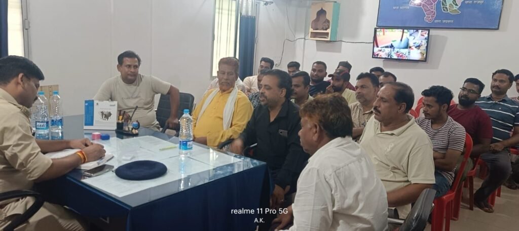 सूरजपुर/प्रतापपुर :–आज दिनांक 5.7.2025 को आगामी मुहर्रम त्योहार के मद्देनजर थाना प्रतापपुर में किया गया शांति समिति बैठक आयोजित मुहर्रम त्यौहार शांतिपूर्वक मनाने तथा रैली जुलूस के दौरान नियम अनुसार आवश्यक दिशा निर्देशो का पालन करने तथा शहर के किन-किन क्षेत्रों से ताजिया अखाड़े जुलूस निकल जाएंगे इस संबंध में विस्तार से चर्चा की गई शास्त्रों के प्रदर्शन तथा द्वारा जारी नियमों का पालन करने के अनुसार आवश्यक निर्देश दिया गया तथा ताजिया जुलूस किन-किन मार्गो से निकलेगी और कहां कहां से अखाड़े जुलूस निकाले जाएंगे इस संबंध में विस्तार से चर्चा की गई।