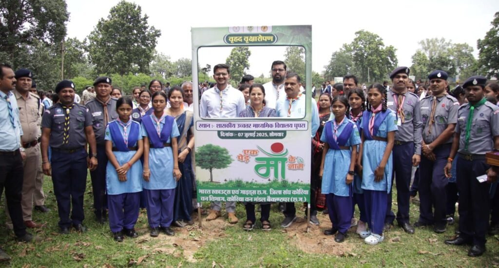 एक पेड़ मां के नाम- स्काउट्स एवं गाइड्स जिला कोरिया ने किया वृहद वृक्षारोपण