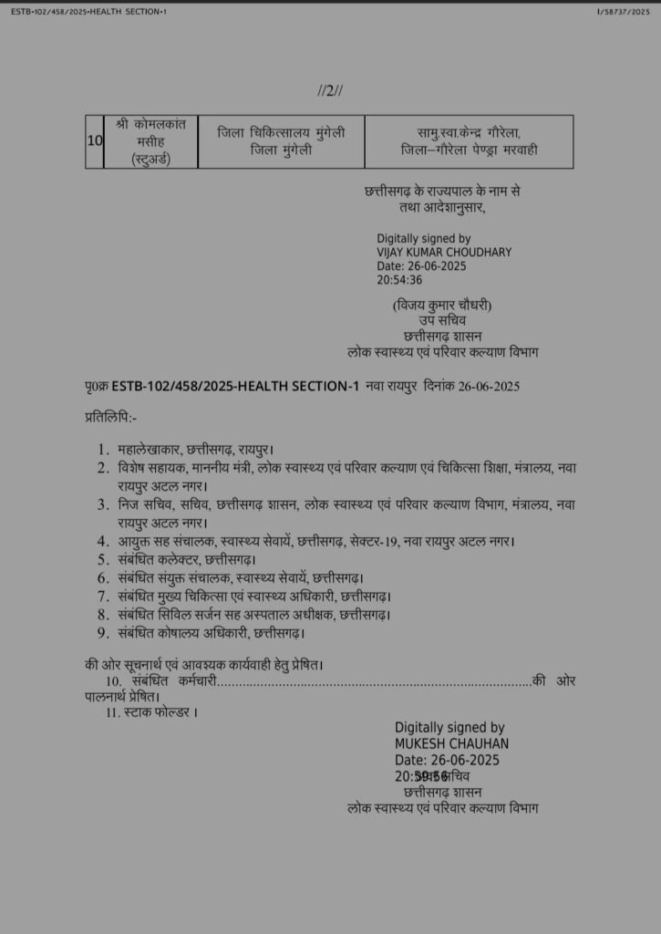 सूरजपुर में अधिकारी की पोस्टिंग पर अभी भी बोर्ड लटका है, उनके नाम की पट्टिका आज भी चमक रही है। ट्रांसफर के 11 दिन बाद भी न कोई रिलीविंग ऑर्डर निकला, न कोई चार्ज हैंडओवर की कार्रवाई हुई। इस बीच अफसर साहब रोज अस्पताल पहुंच रहे हैं, मानो कुछ हुआ ही न हो
