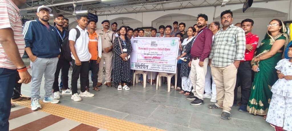 अम्बिकापुर – दिनांक 30/07/2025 को सरगुजा जिला के अंबिकापुर रेलवे स्टेशन में आर पी एफ पोस्ट के निरीक्षक सुनीता मिंज, उप निरीक्षक प्रेमचन्द शर्मा के साथ मिलकर एक्सेस टू जस्टिस के जिला समन्वयक अनिल कुमार और उनके टीम मेंबर संगीता खलखो, विद्या सिंह और प्रेमसागर के द्वारा बाल तस्करी के खिलाफ विशेष जागरूकता अभियान चलाया गया, अभियान के दौरान रेलवे स्टेशन मास्टर दुर्गा प्रसाद जी, मुख्य स्टेशन प्रबंधक, सीटीआई और रेलवे स्टाफ की मौजूदगी में यात्रियों और बच्चों को पंपलेट वितरित कर स्टेशन परिसार में मानव तस्करी से जुड़ी जरूरी जानकारी दी गई। मौजूद लोगों को बताया गया कि किस प्रकार मानव तस्करी एक अदृश्य अपराध है जो अक्सर बच्चों और महिलाओं को निशाना बनाता है। इस कार्यक्रम का मुख्य उद्देश्य रेलवे स्टेशन जैसे संवेदनाशील स्थान पर बच्चों की सुरक्षा सुनिश्चित करना है क्योंकि तस्कर अक्सर ट्रेन का उपयोग करते हैं। हमारा प्रयास है कि हर नागरिक सतर्क हो और जरूरत मंद बच्चों की पहचान कर उनकी सहायता करें। इस अवसर पर मौजूद बच्चों को और उपस्थित यात्रियों को पंपलेट भी वितरित किए गए!