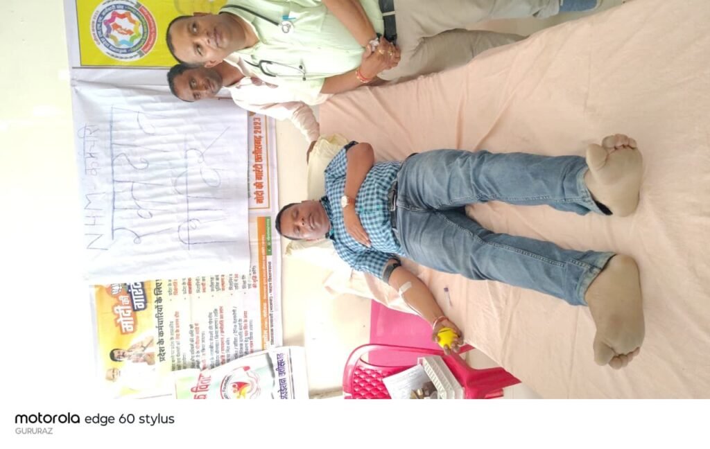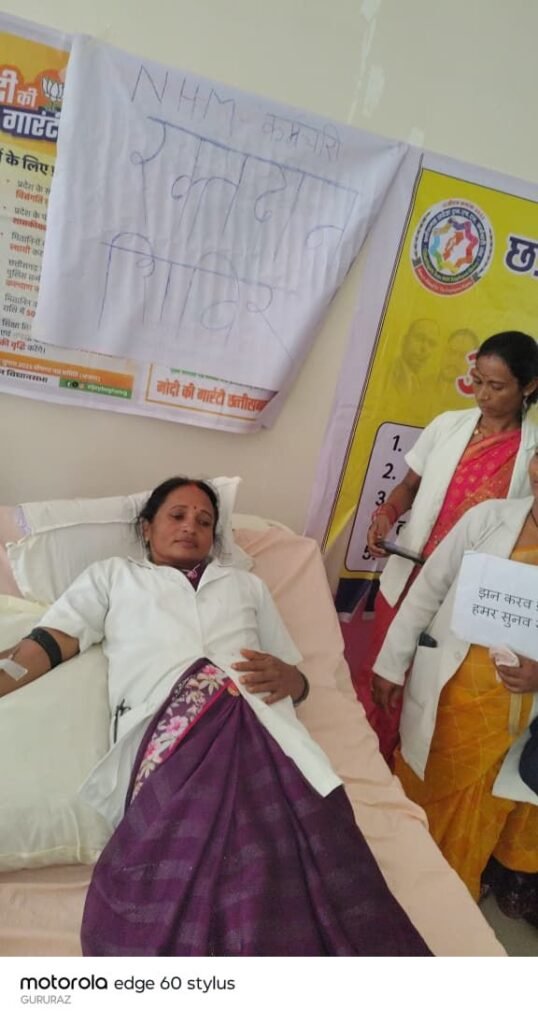 सूरजपुर,राष्ट्रीय स्वास्थ्य मिशन (NHM) के कर्मचारी अपनी 10 सूत्रीय मांगों को लेकर लगातार 15वें दिन भी हड़ताल पर डटे हुए हैं। आंदोलन को प्रभावी बनाने के लिए प्रतिदिन विभिन्न गतिविधियाँ आयोजित की जा रही हैं, ताकि सरकार का ध्यान उनकी समस्याओं की ओर आकर्षित हो,,कर्मचारियों ने हाईटेक न्यू बस स्टैंड धरना स्थल पर उपस्थित होकर जनहित को ध्यान मे रखते हुए रक्त दान किया.ताकि किसी की मौत खून की कमी के कारण न हो.और सरकार से मांग किया कि हम सेवा करने वाले लोग है ,हमेशा हमने आगे आकर सेवा किया है.चाहे कोरोना काल हो या कोई इपीडेमिक का समय हो,उसी प्रकार आज भी हमने लोकहित को ध्यान मे रखकर रक्त दान किया है.एवं सरकार से मांग करते है कि जल्द-से-जल्द हमे नियमितीकरण सहित अन्य 10 मांगो पर विचार करते हुए सौगात दे.