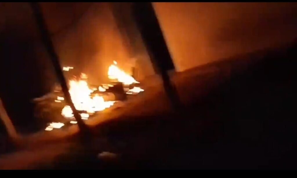 घर के बाहर खड़ी दो मोटरसाइकिलों में अज्ञात व्यक्ति ने लगाई आग