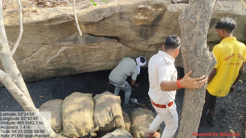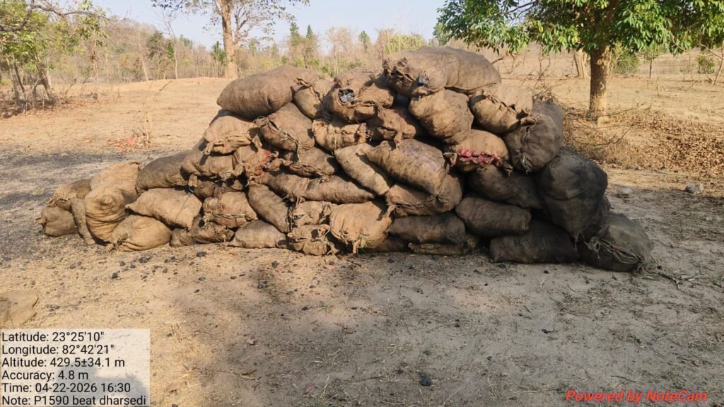 इसी तारतम्य में, कल दिनांक 22/04/2026 शाम को मुझे परिक्षेत्र सहायक धरसेडी़ के द्वारा सूचना मिली कि धरसेडी़ बीट के कक्ष क्रमांक P 1590 में अवैध रूप से कोयला खनिज का उत्खनन कर, दो से तीन जगह बोरी में भरकर, रात्रि को परिवहन कर अन्य जगह पहुंचाने के लिए रखा गया है।