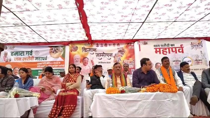 विष्णु के सुशासन का एक साल छत्तीसगढ़ खुशहाल के स्लोगन के साथ आज सूरजपुर के सहकारीता समीति में किसान सम्मेलन का आयोजन किया गया,,जहां किसानो को शाल श्रीफल से सम्मानित किया गया,,जहा किसानो को साय सरकार की चलाई जा रही योजनाओं के बारे मे विस्तृत रूप से बताया गया,,वही धान खरीदी को लेकर किये जा रहे प्रयासों के बारे मे भी जानकारी दी गई,,जहा कई किसानो को किसान किट का भी वितरण किया गया,,वही किसानो को आगे बढ़ाने के लिये डबल इंजन की सरकार की चलाई जा रही योजनाओं के बारे मे भी अवगत कराया गया,,,,